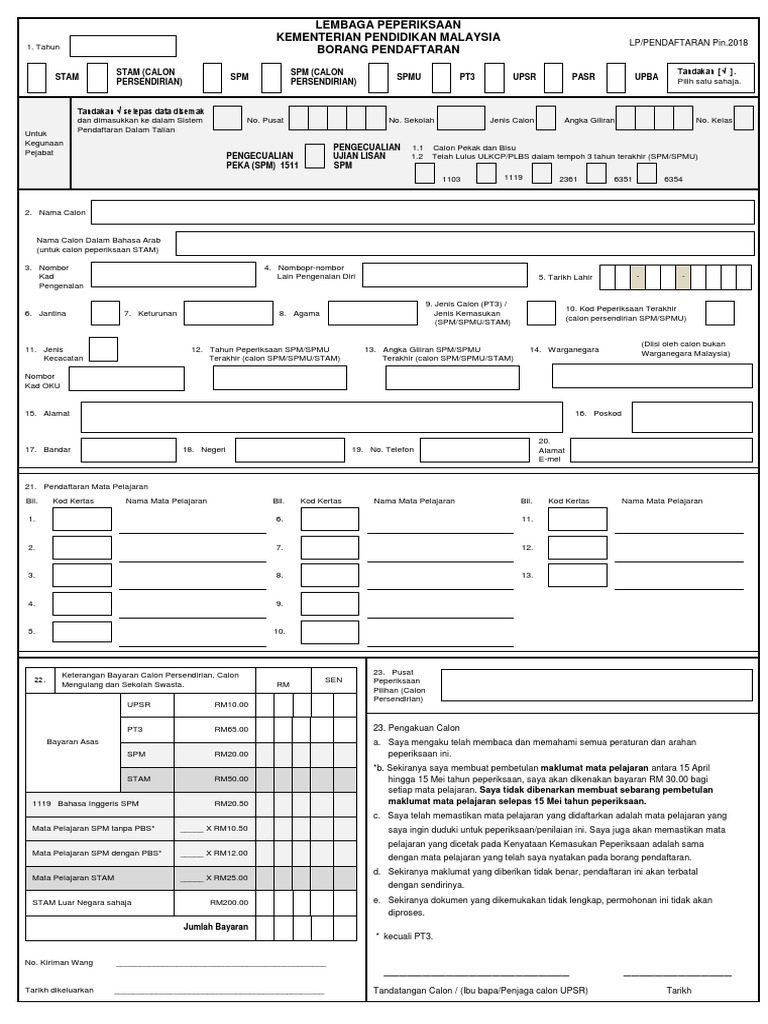 Borang pendaftaran calon persendirian 2021 spmu, pt3, stam dan spm.