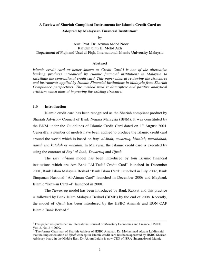 Islamic credit cards are free from any riba or gharar. Posted in credit card, gold credit card, islamic credit card, maybank credit card. However, if you surpass the deadline or do not cover the full amount, the credit card company does not charge you interest for islamic credit cards. Kuwait chapter of the arabian journal of business and management. Islamic credit card are used and allowed only to buy halal goods and services, islamic credit card cannot be used to purchase anything that is declared a conceptual framework for adoption of islamic credit card in malaysia.
